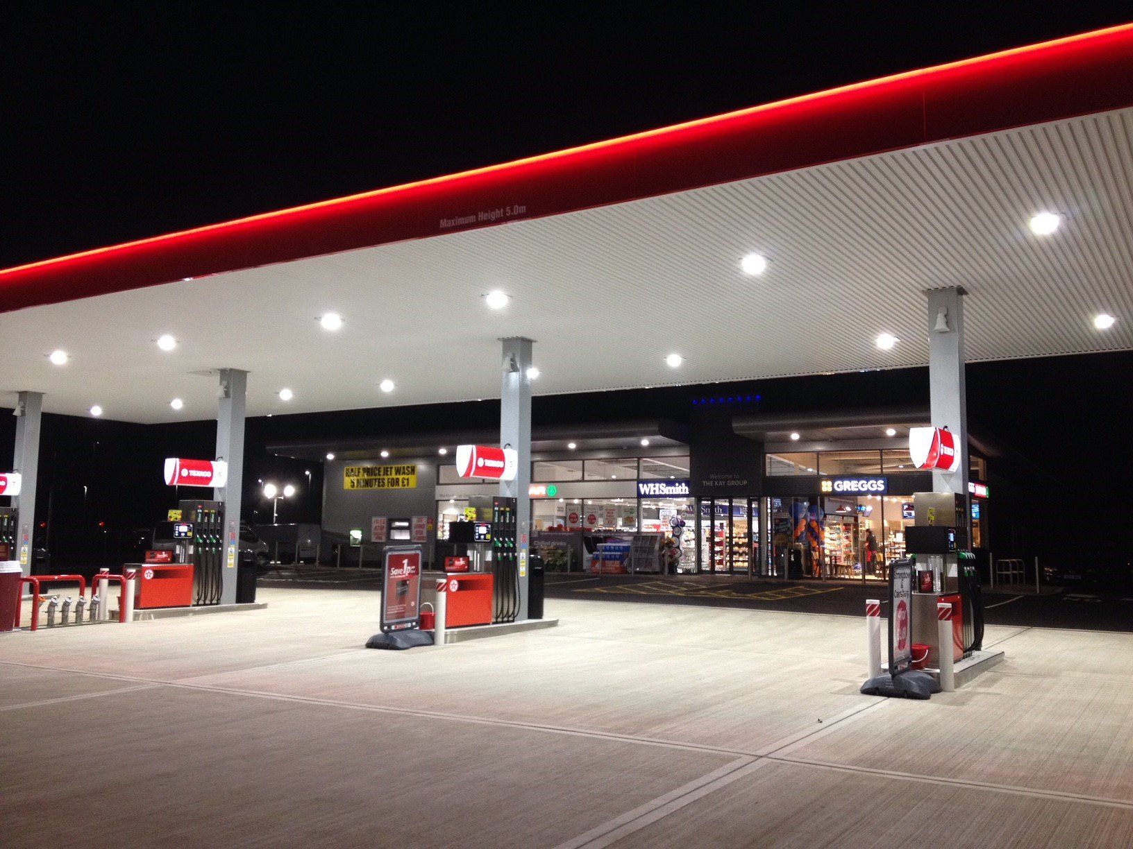 To the perimeter of the site we installed LED streetlights, whilst the forecourt was fitted out with LED canopy lighting, jetwash and air vacuum systems and an electric charging station.