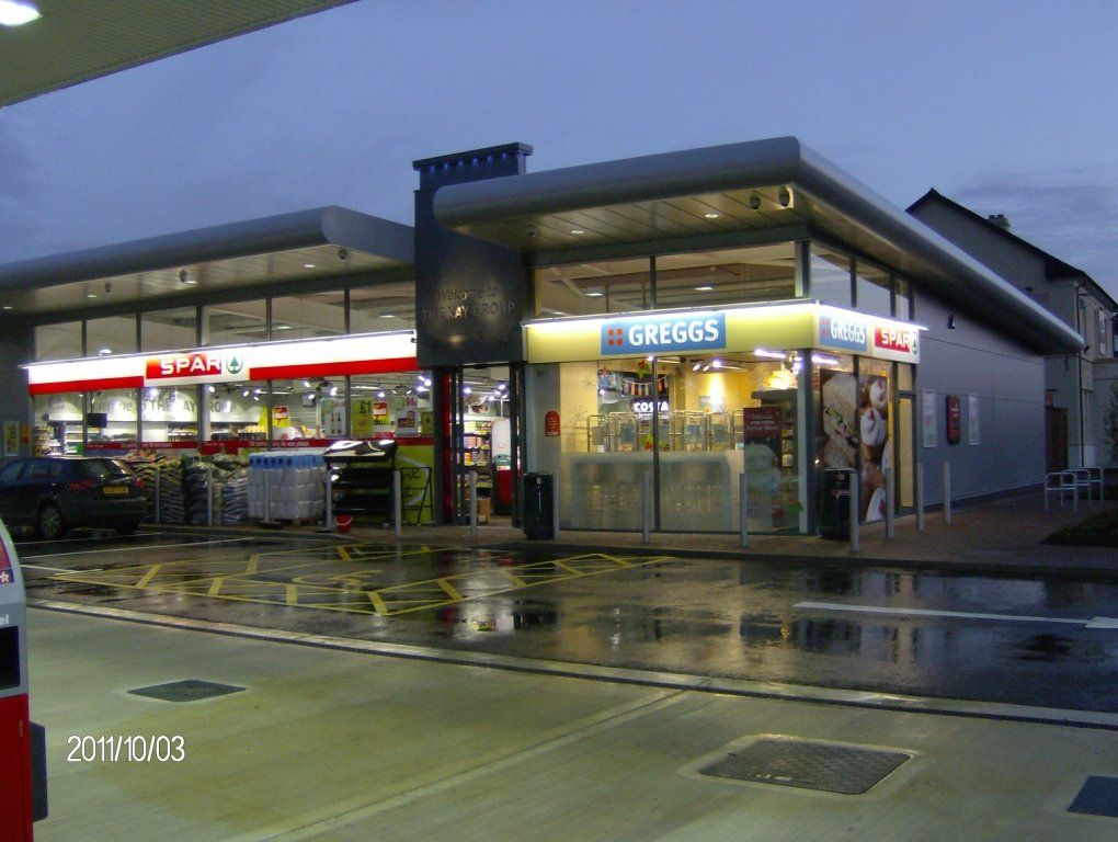 The exterior of the shop consisted of streetlighting being installed to the jetwashers and perimiter of the site whilst canopy lighting was installed to the forecourt area.