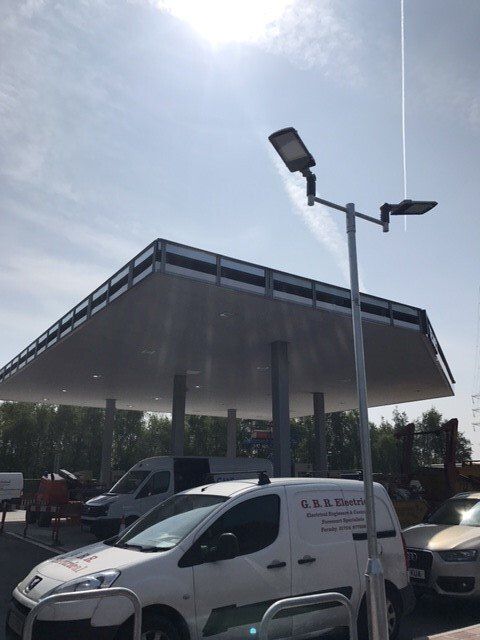 To the perimeter and rear of the site we installed 22 LED streetlights, whilst the forecourt was fitted out with LED canopy lighting, jetwash and air vacuum systems. The design also included the installation of lighting to the exterior and side of the shop, whilst the under canopy pedestrian area was fitted out with an additional 9 downlights.